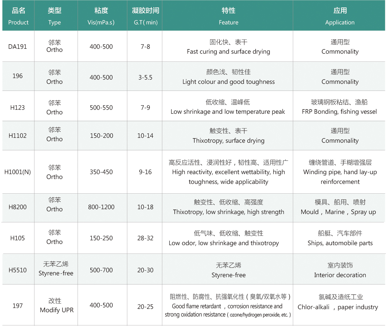 H-series hand lay-up unsaturated polyester resins provide low viscosity,good water resistance, processability,and
